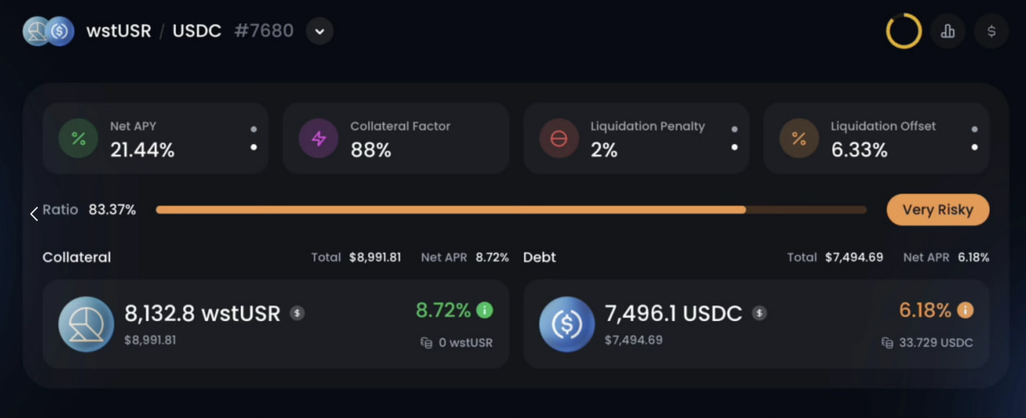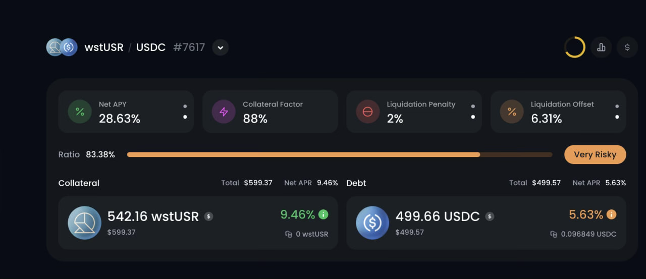 Fluid Multiply wstUSR-USDC, leverage 6x