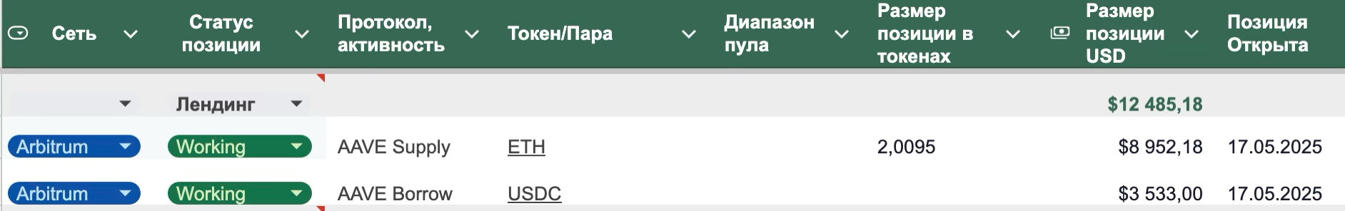 3. Закрыта позиция Fluid Arbitrum GHO, позиция была открыта 17 дней назад, за это время доходность снизилась с 12,5 до 10,03 %APR.