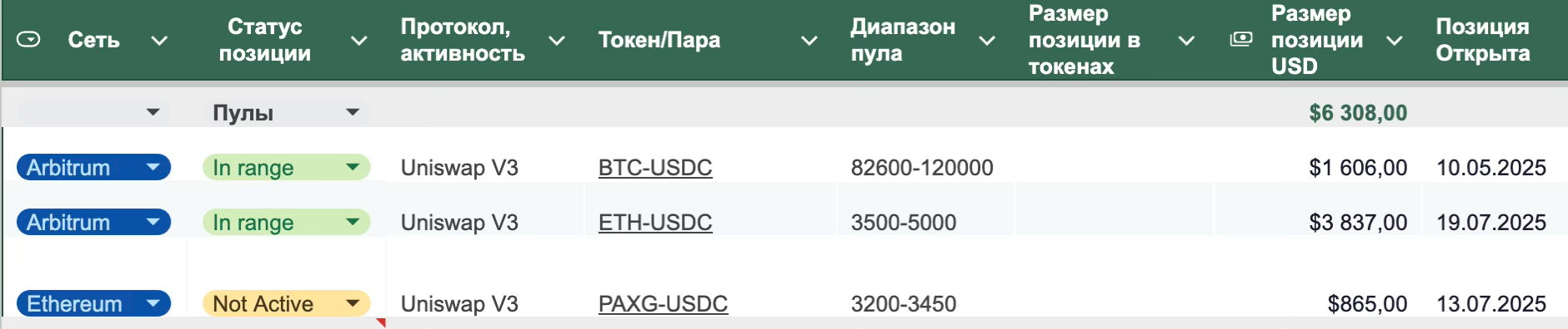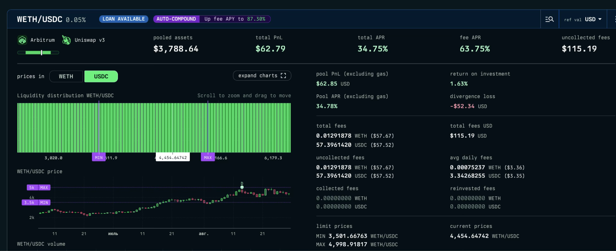 Позиция Uniswap V3 Arbitrum ETH-USDC 3500 - 5000