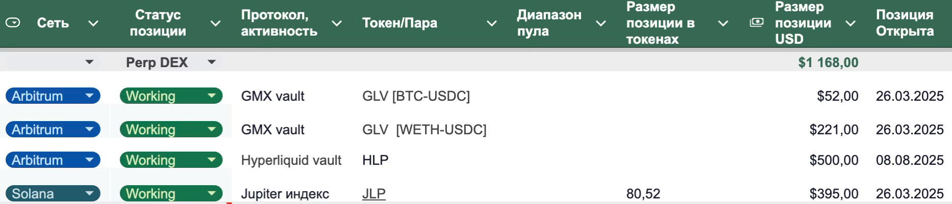 Вначале была открыта небольшая позиция на тестовом кошельке, чтобы убедиться что стратегия - рабочая, параметры стратегии позволят заработать.