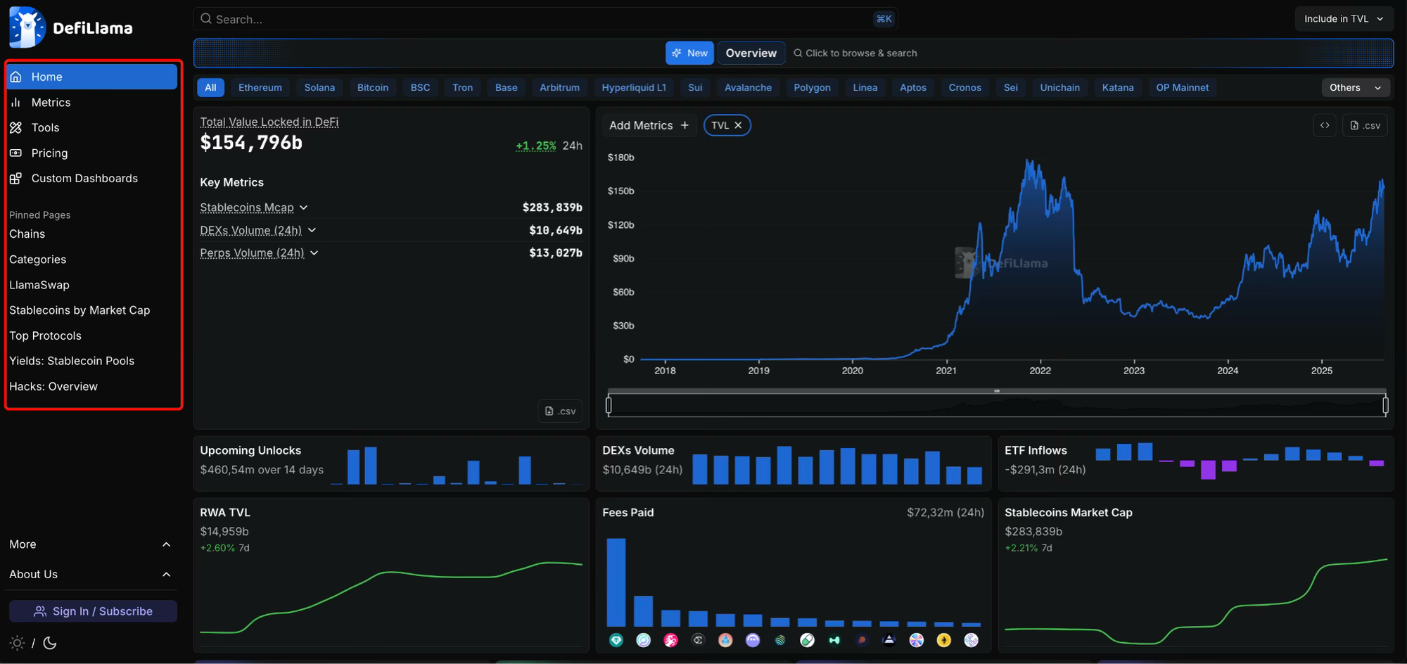 1. Дизайн протокола DefiLlama изменился.