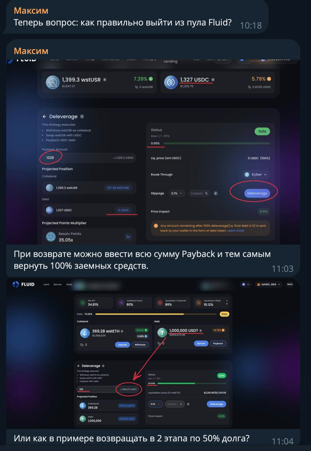 Протокол Fluid, стратегия Multiply, wstUSR-USDC, leverage 6x