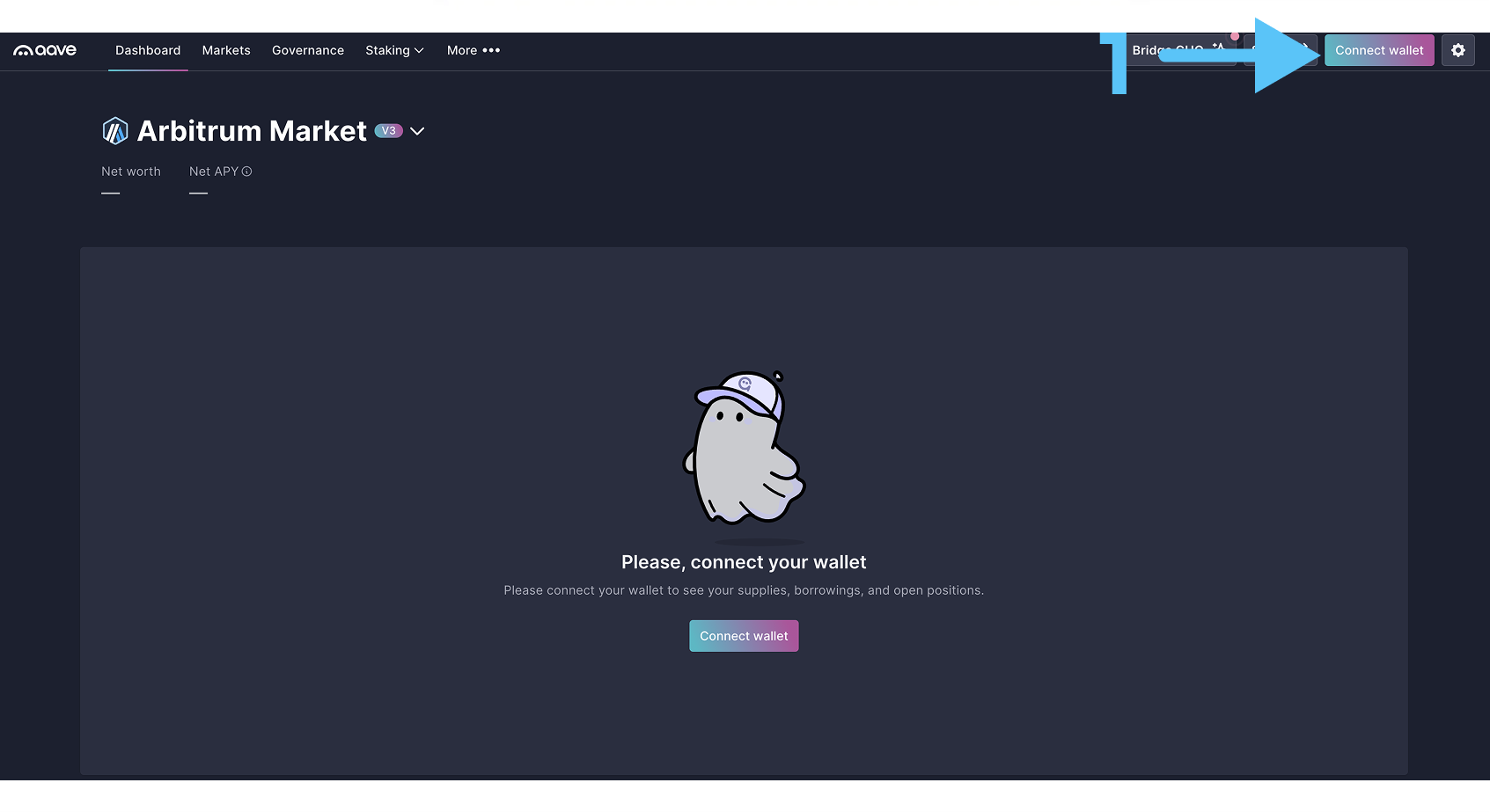 Шаг 1: Подключаем кошелёк к платформе Aave
