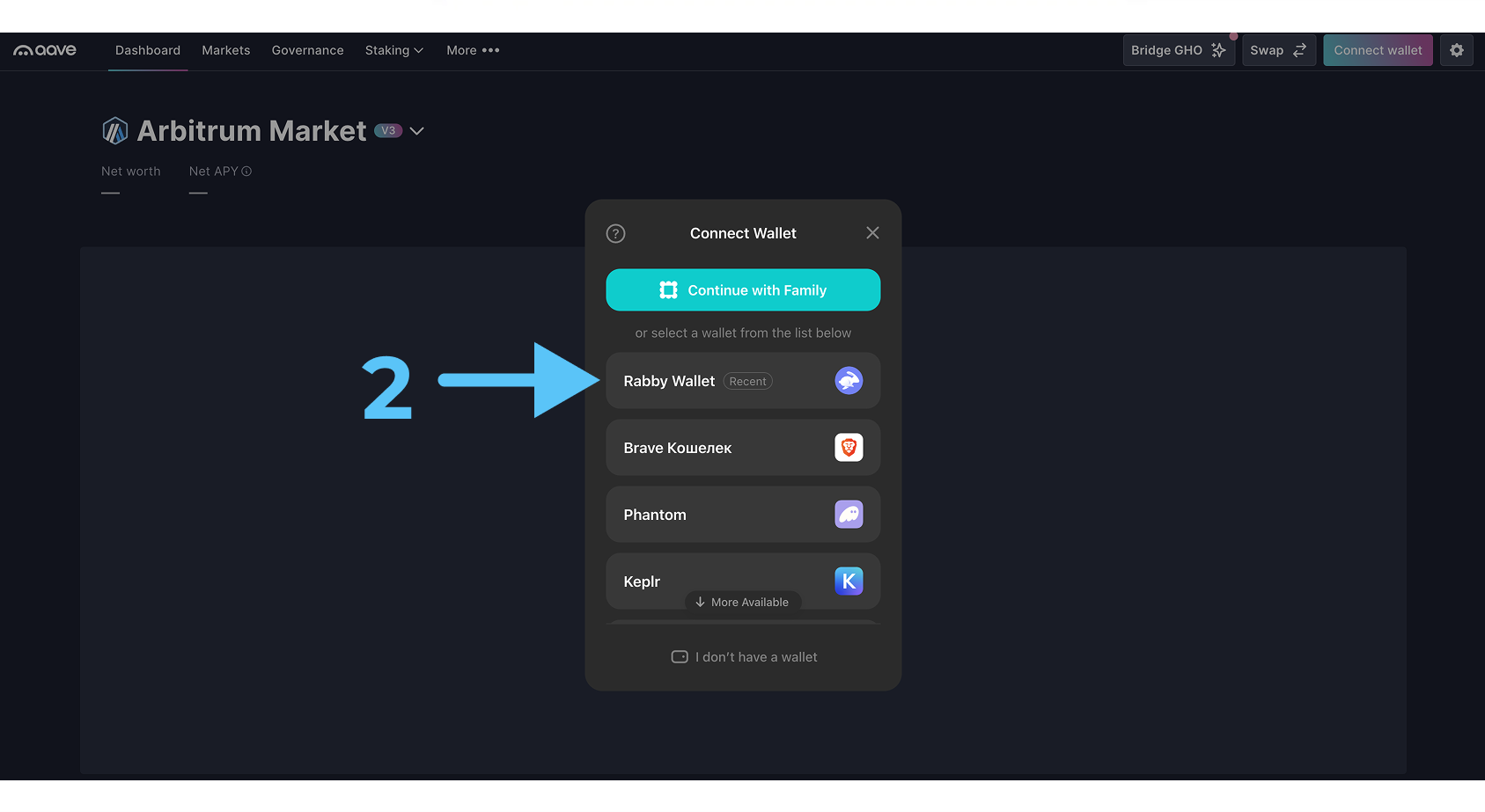 - Переходим на платформу Aave