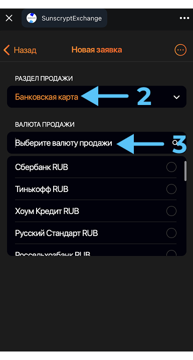 - Укажите валюту продажи, которой будете расплачиваться (3).