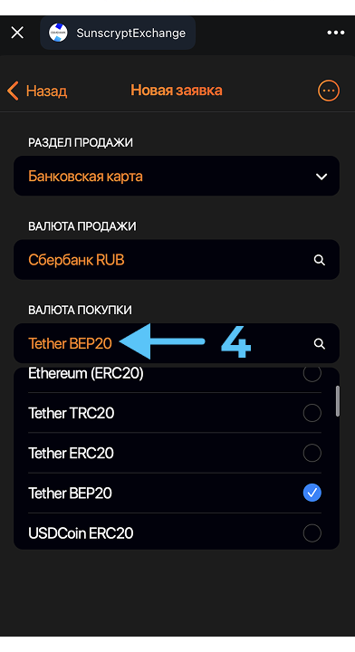 - Определите желаемую криптовалюту для покупки (4).