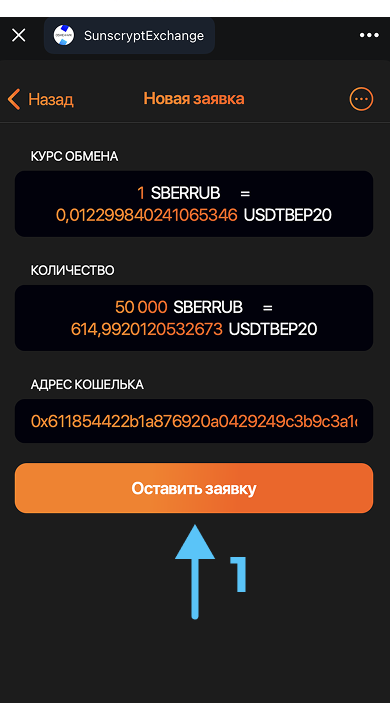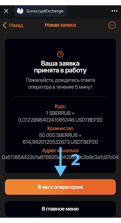 Инструкция по пополнению баланса без KYC через обменнник Sunscrypt