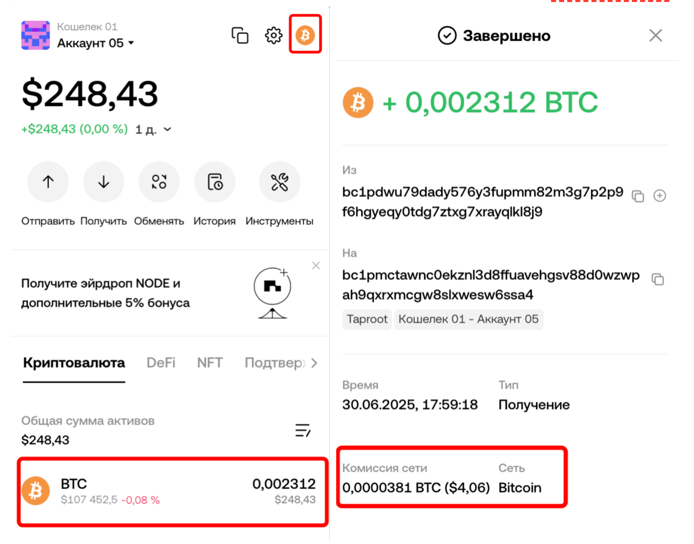 4. Вывод BTC на адрес своего кошелька в нативной сети