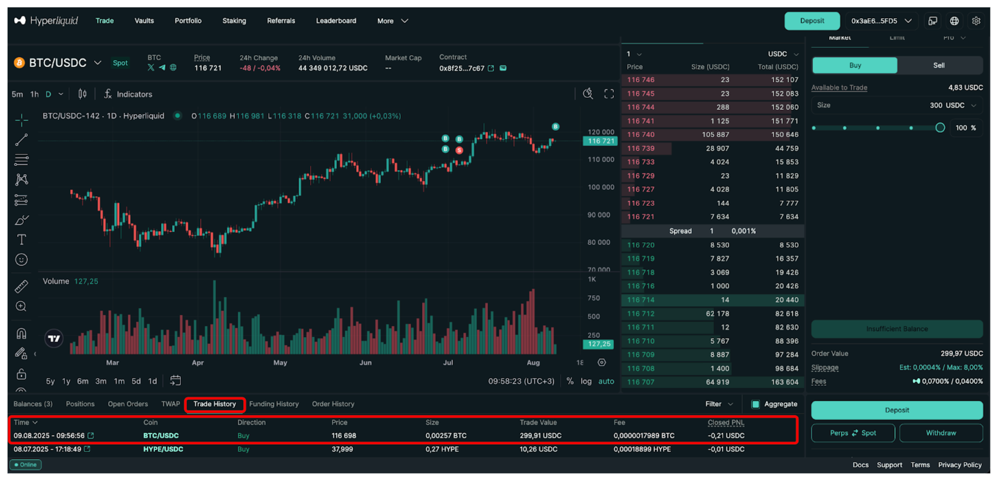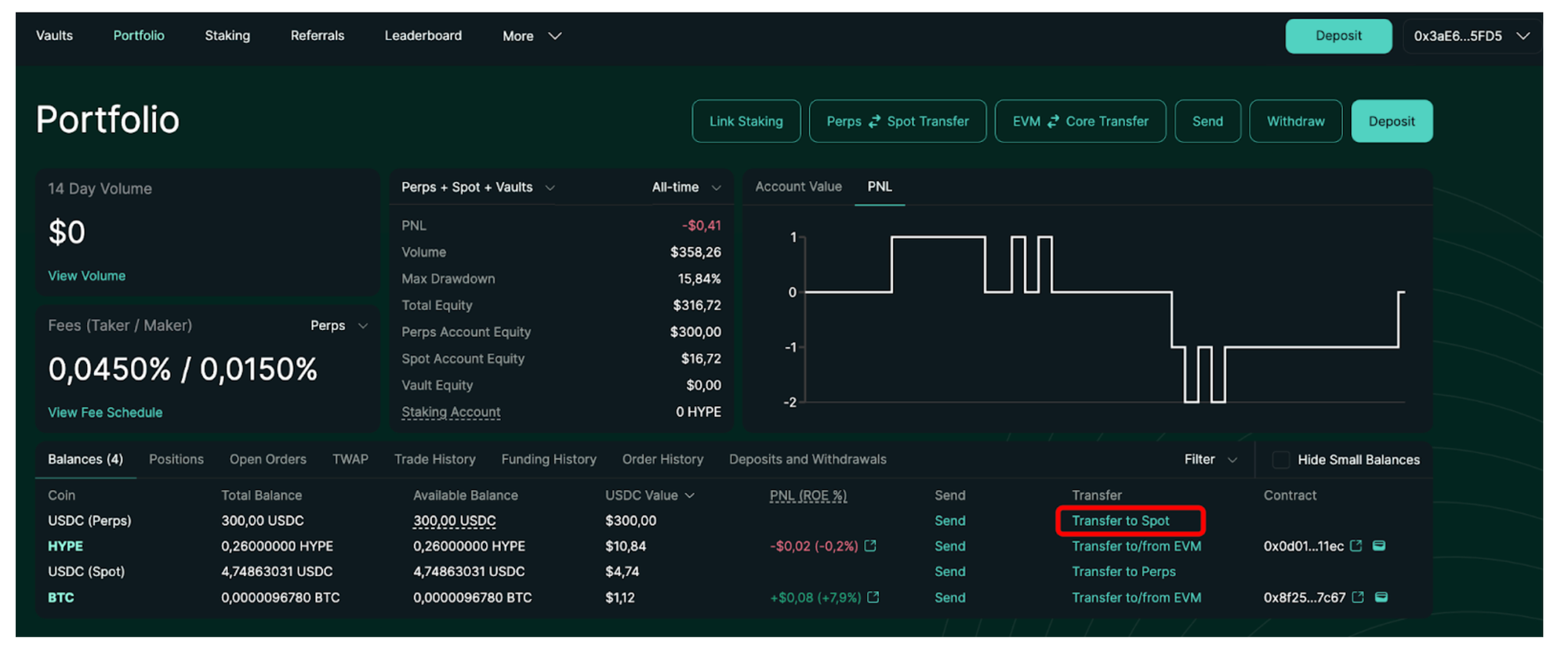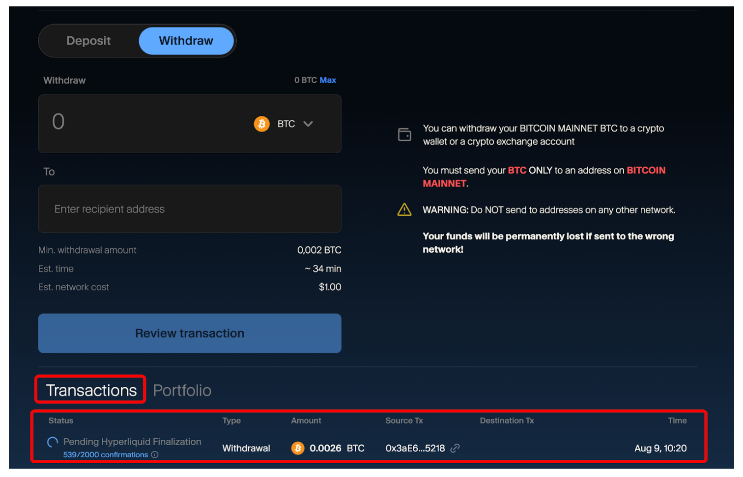 - Мы можем перевести BTC из Hyperliquid в нативной сети на свой Биткоин кошелек. BTC мы предварительно купим на DEX бирже Hyperliquid.