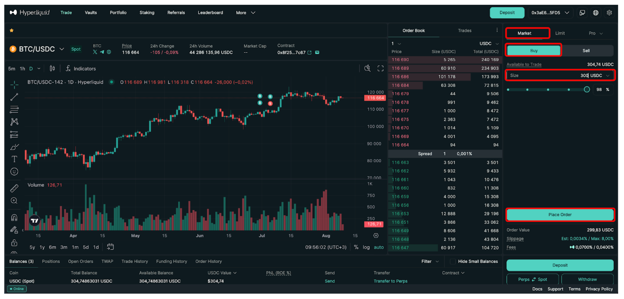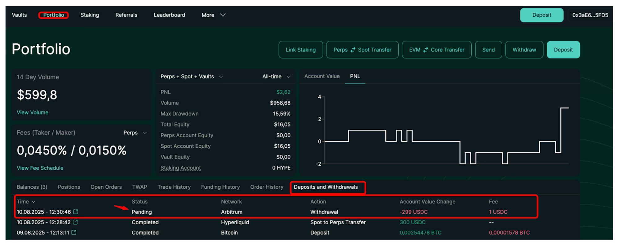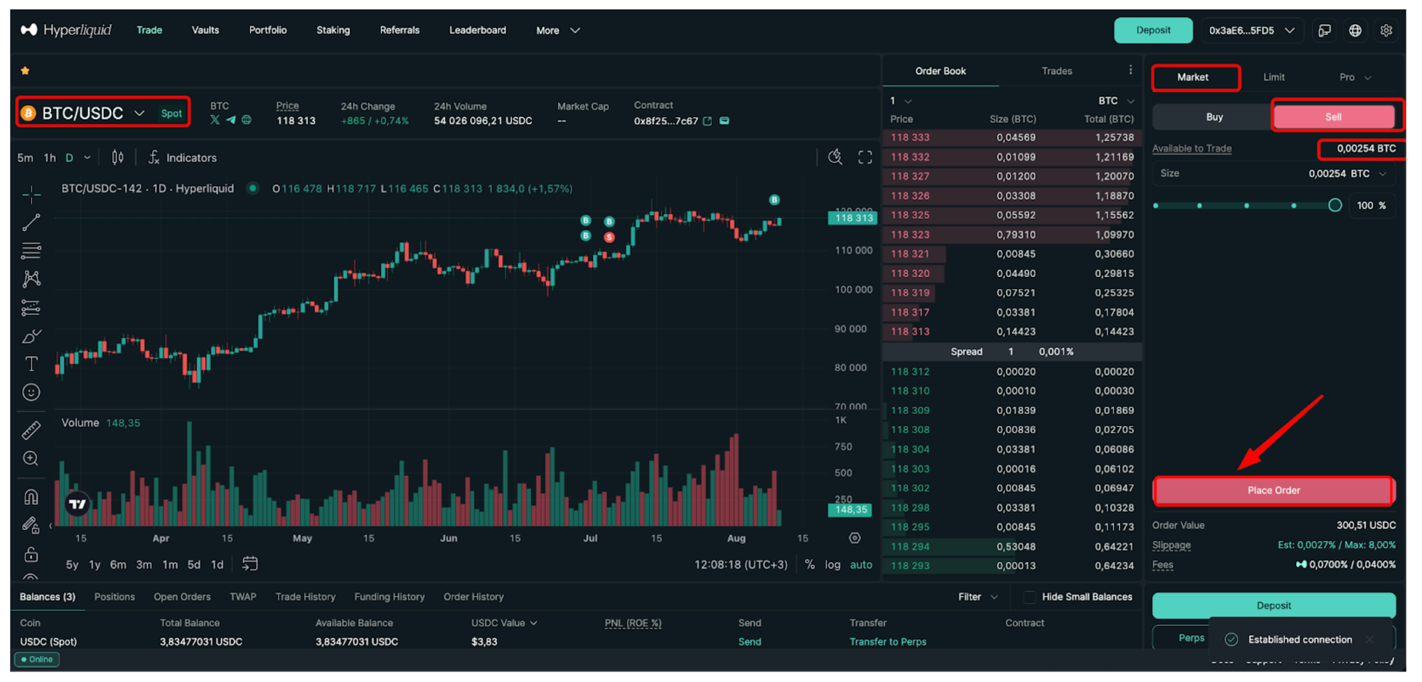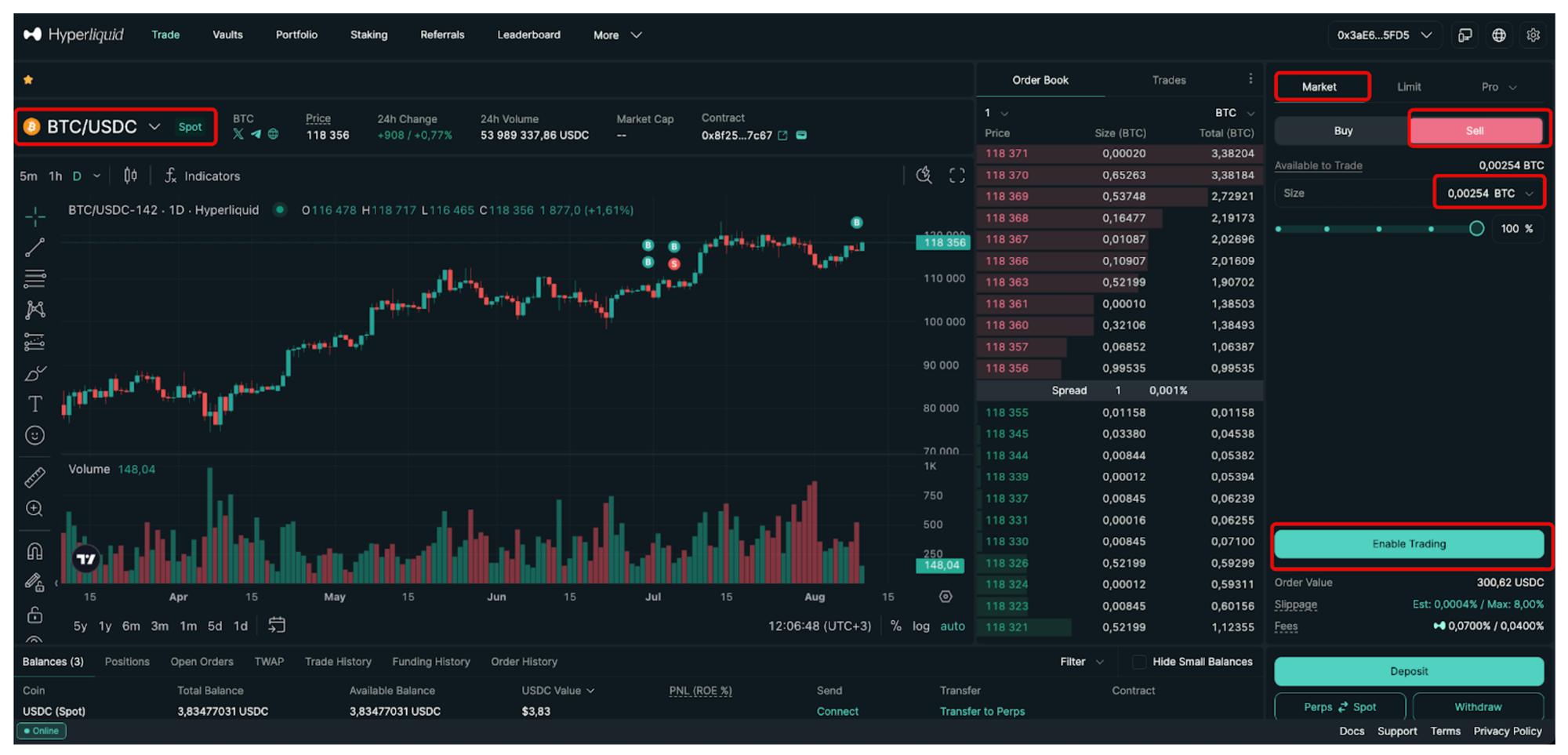 - Мы можем перевести BTC из Hyperliquid в нативной сети на свой Биткоин кошелек. BTC мы предварительно купим на DEX бирже Hyperliquid.