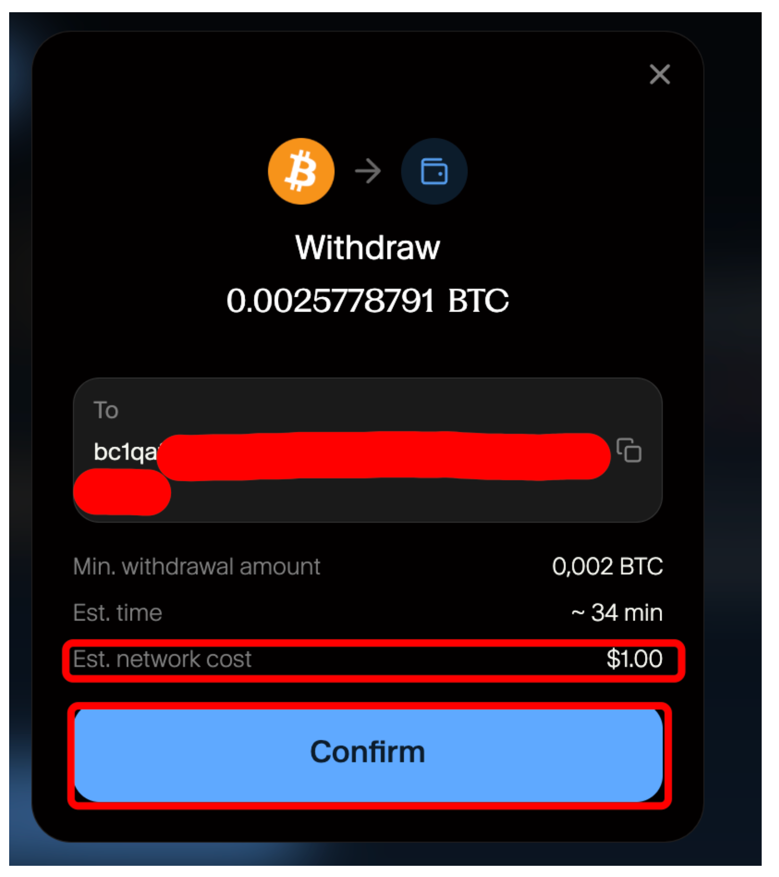 2. Вывод BTC в нативной сети на свой Биткоин кошелек.