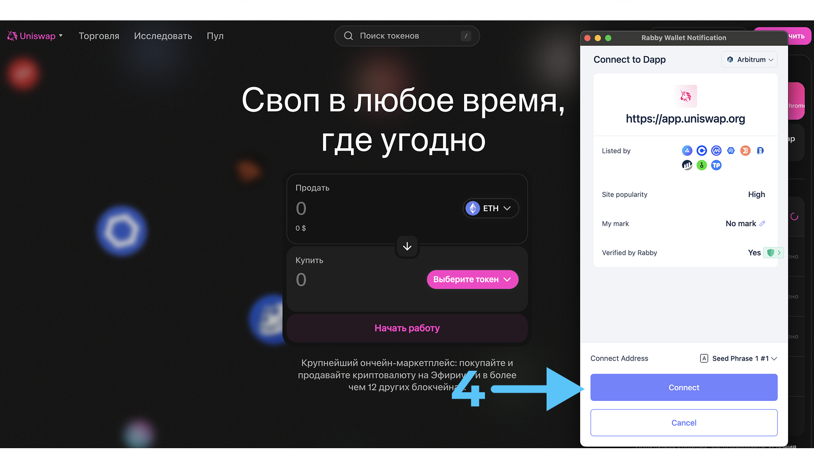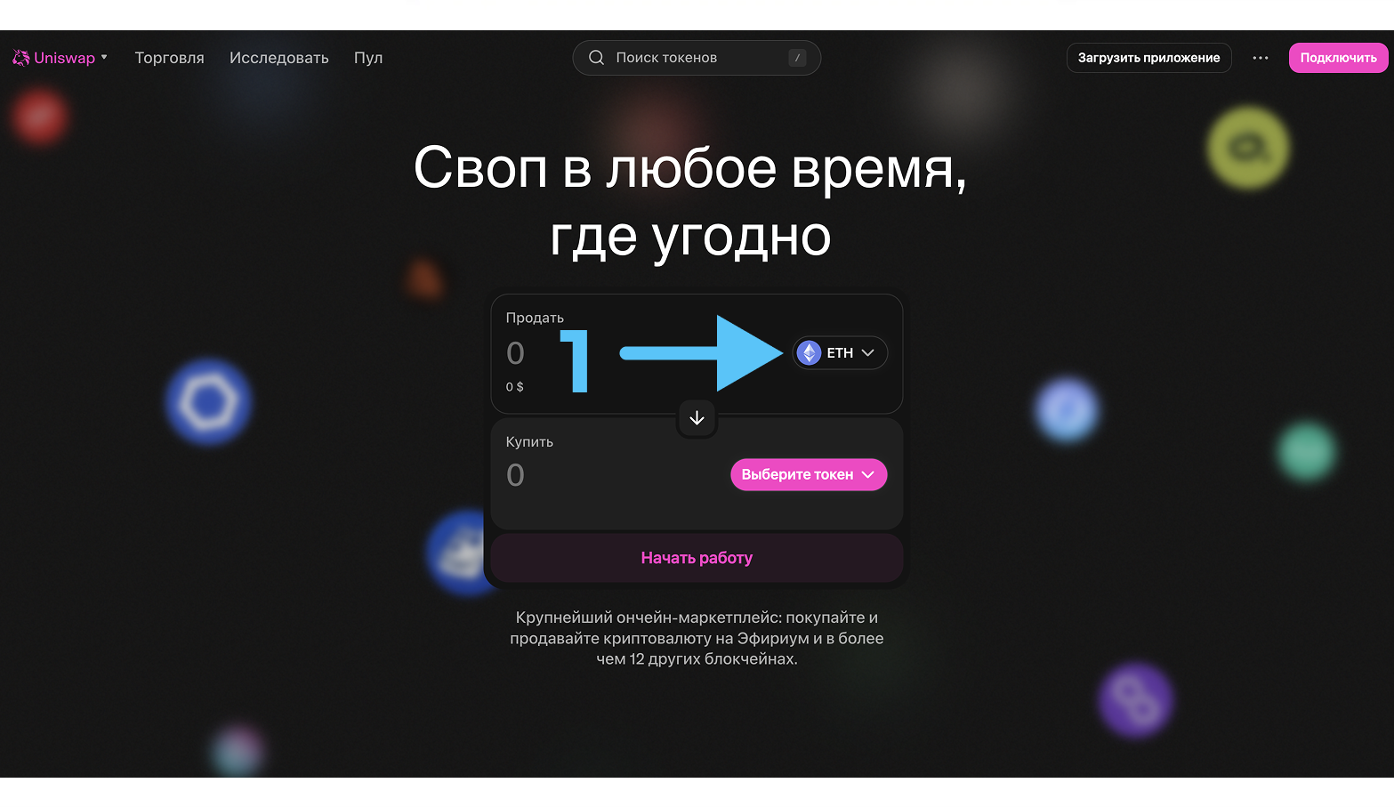 Шаг 1: Подключаем кошелёк к платформе Uniswap
