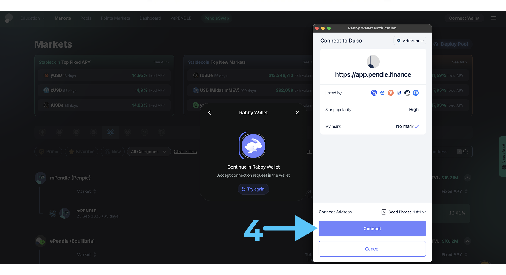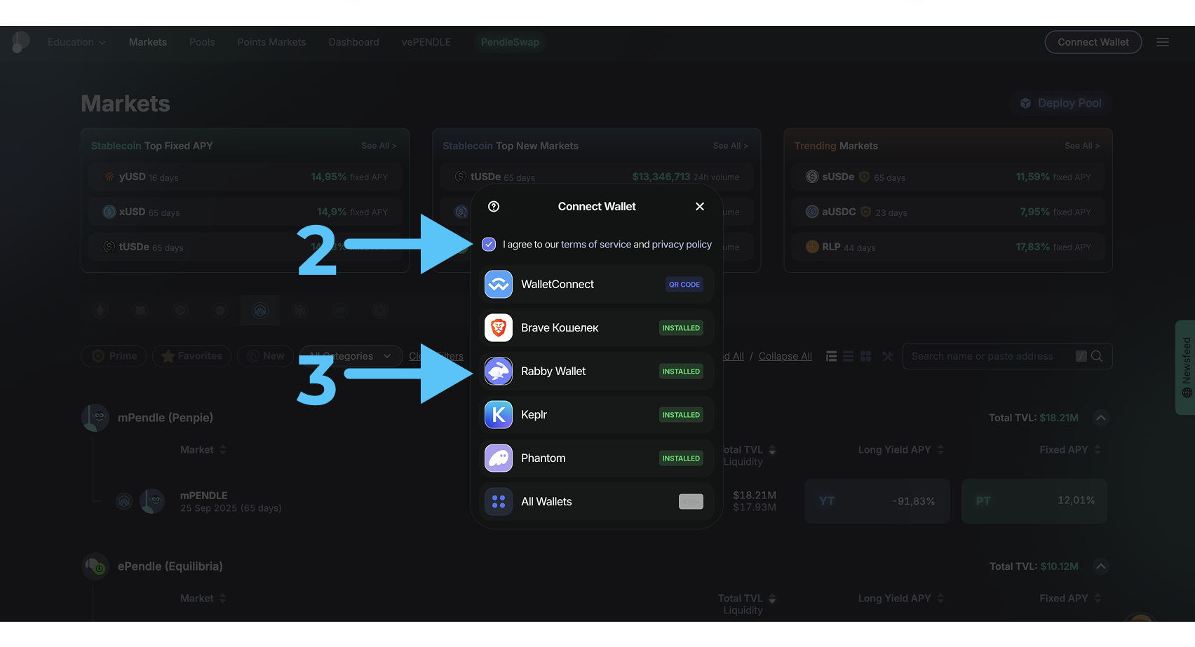 Шаг 1: Подключаем кошелёк к платформе Pendle