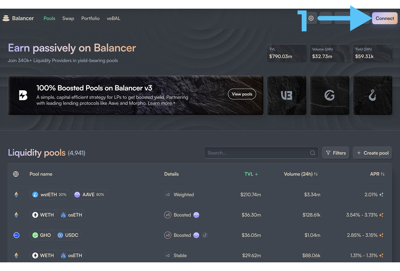 Шаг 1: Подключаем кошелёк к платформе Balancer