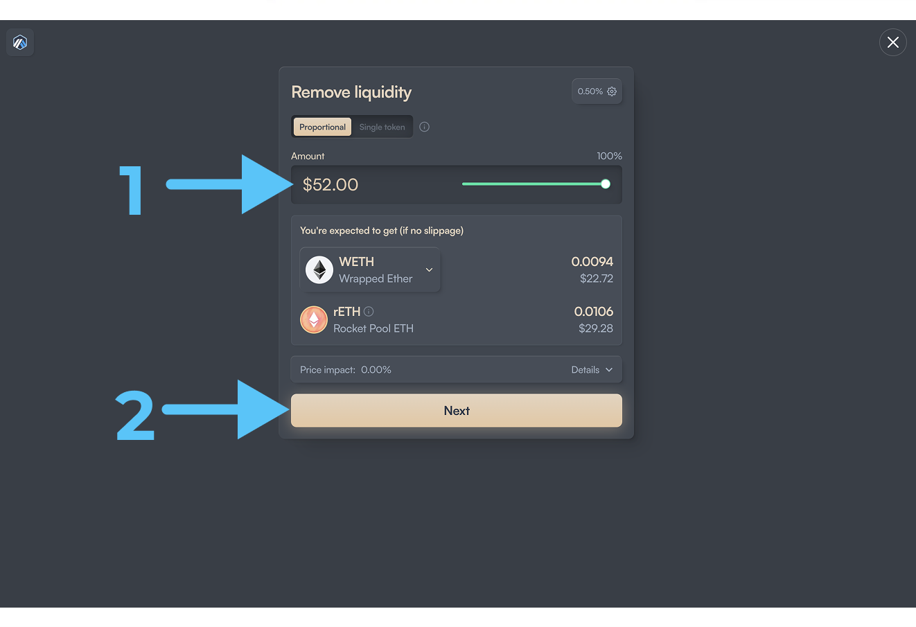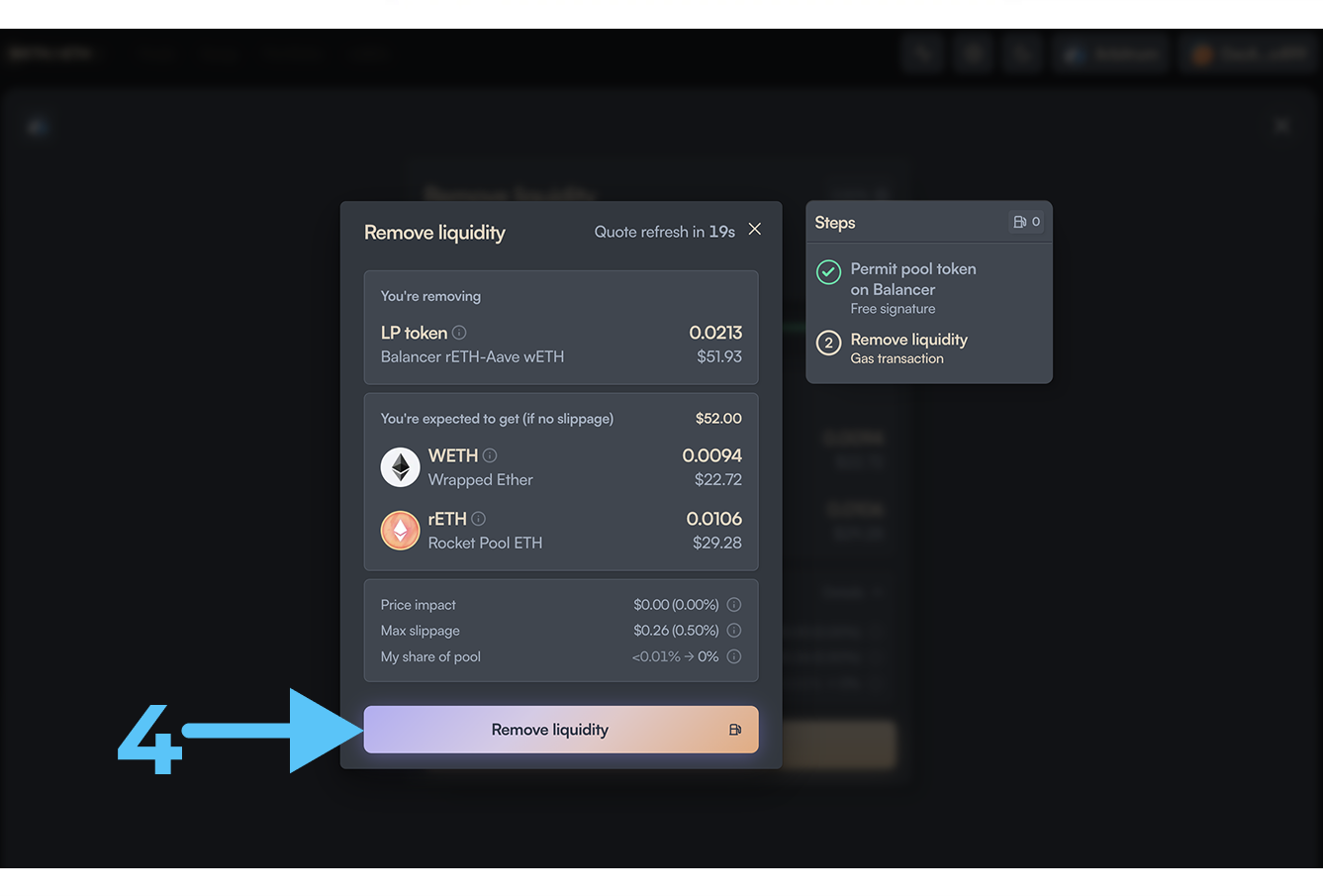 Шаг 4: Изымаем ликвидность из пула
