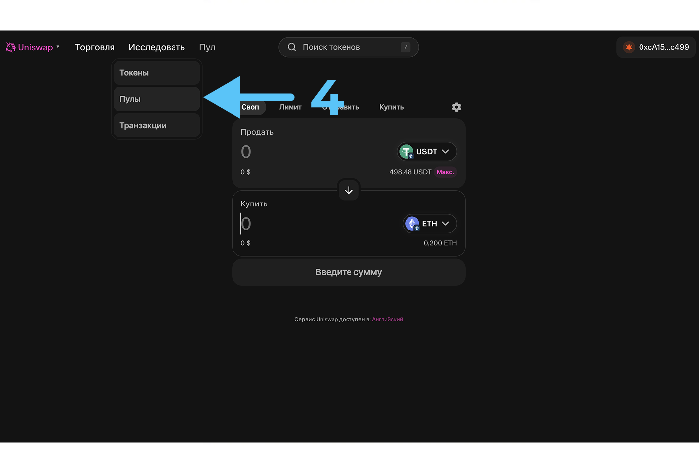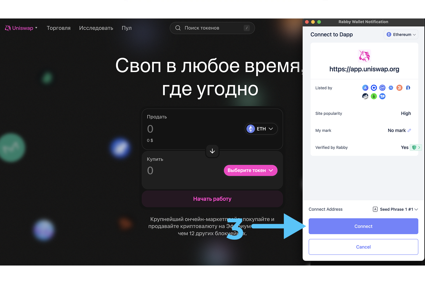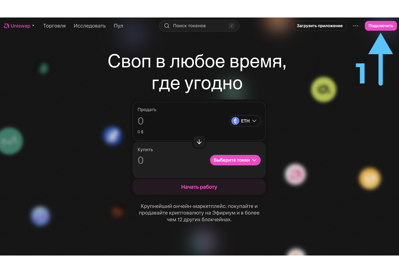 Шаг 1: Подключаем кошелёк к платформе Uniswap