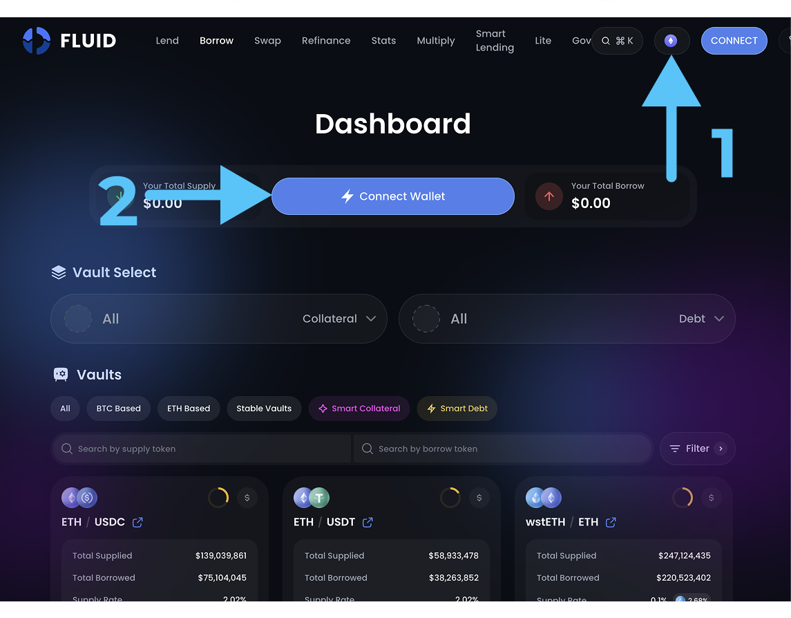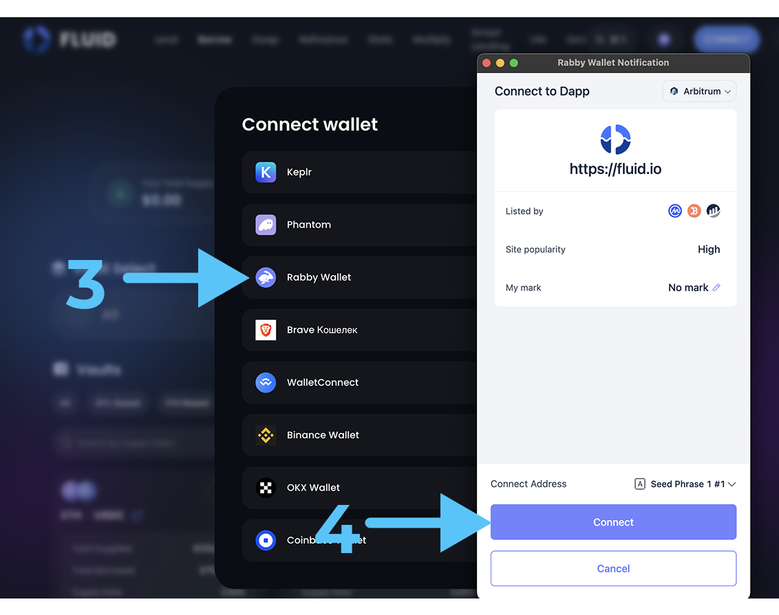 Шаг 1: Подключаем кошелёк к платформе Fluid