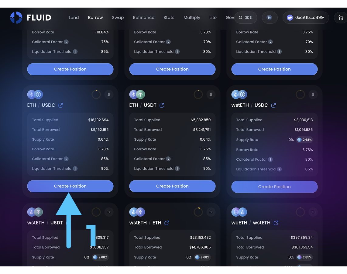 Шаг 2: Вносим залог и берём займ на платформе Fluid