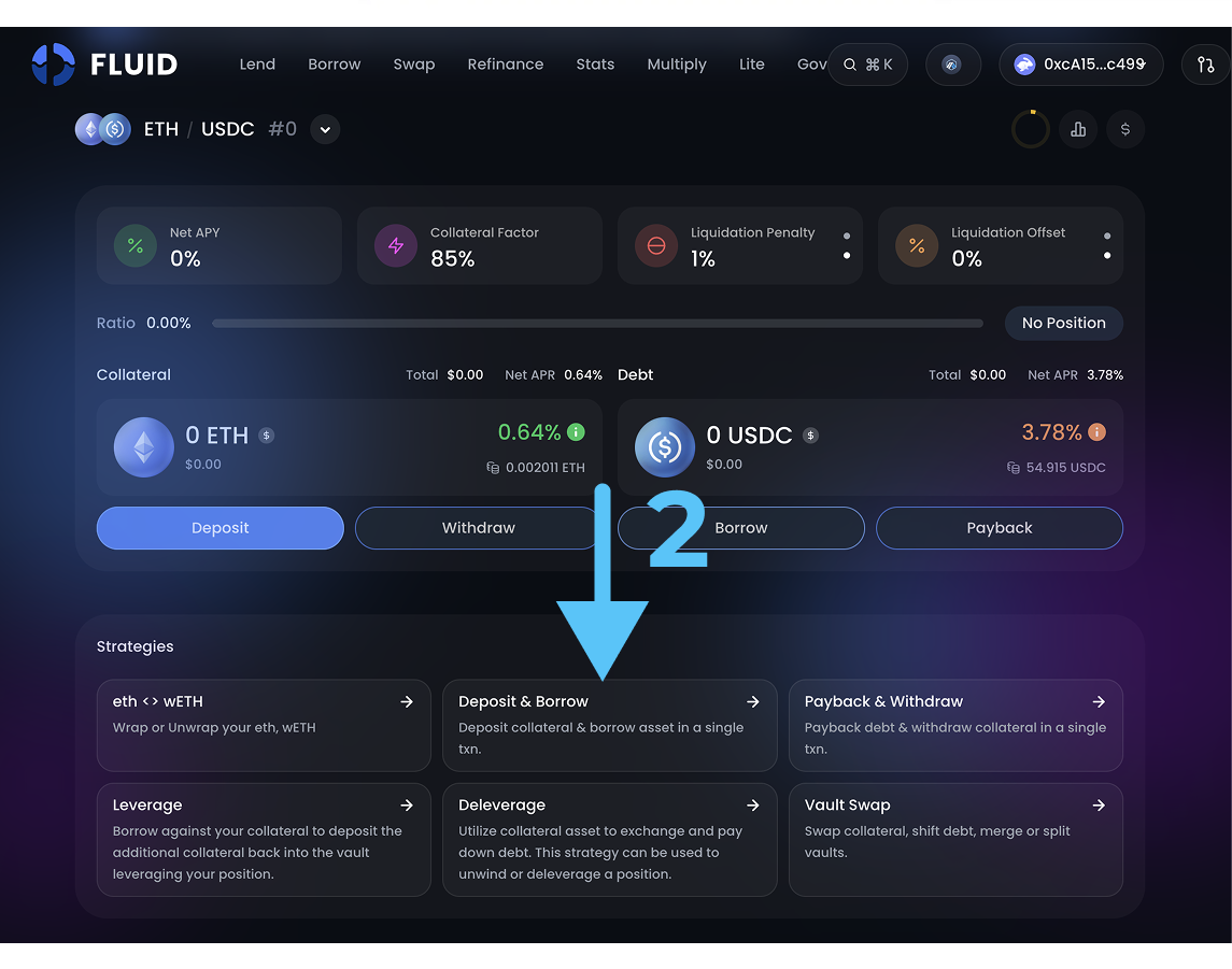 - Кликаем на “Deposit & Borrow“ (2), чтобы за раз внести залог и занять