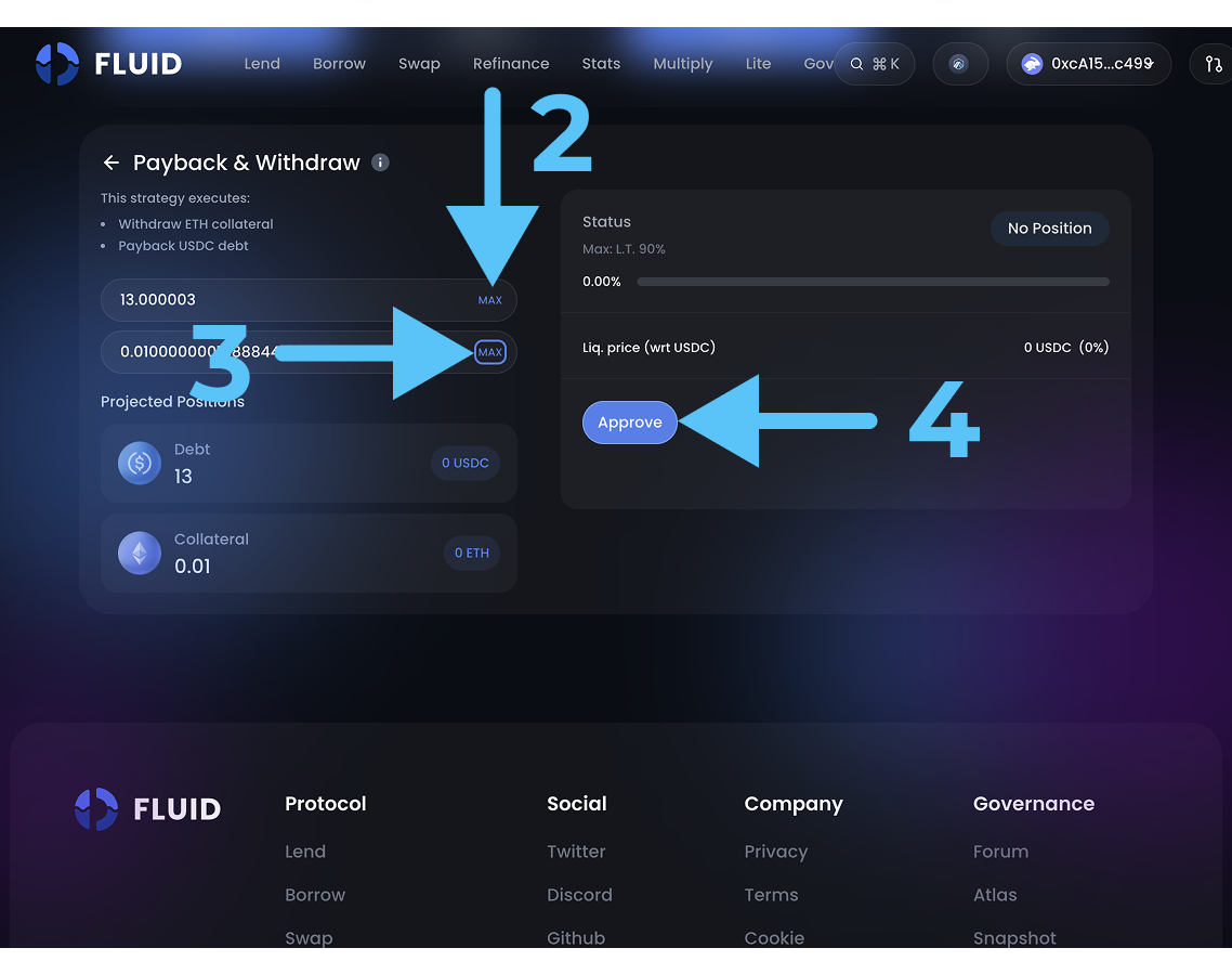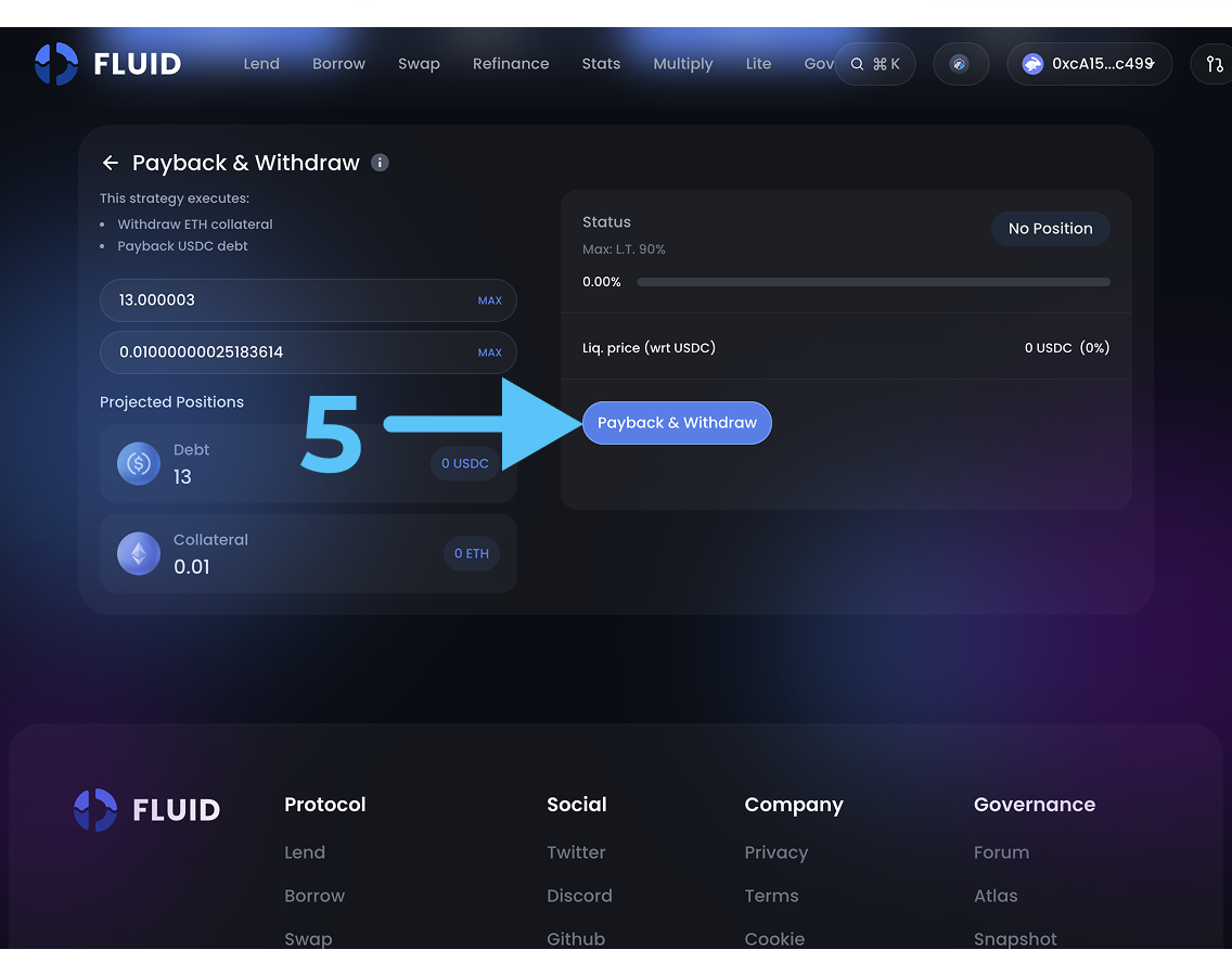 - Кликаем на “Payback & Withdraw“ (5) и подписываем транзакцию в кошельке